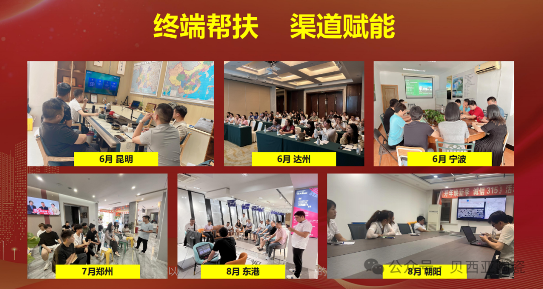 自2024年以來,貝西亞陶瓷多部門協同聯動,馬不停蹄輾轉全國各地,深入一線實地開展終端賦能幫扶、產品交流鑒賞、渠道拓展創富之旅,收到了積極的成效和良好的市場反饋;同時也助力終端經銷商在市場中掌握主動權,實現利量雙線創收,領勢先行。